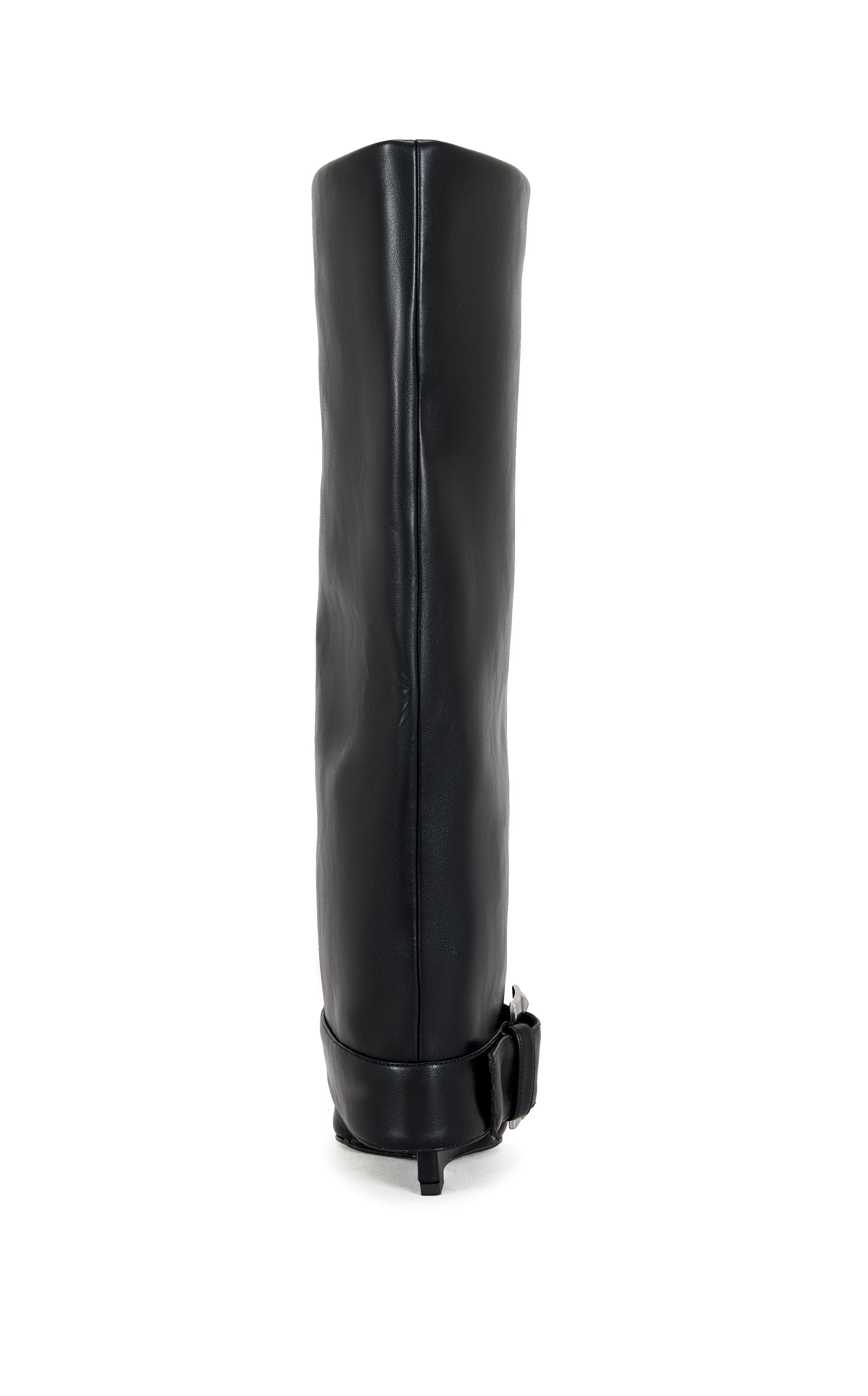 We did it for you. Tall point-toe boot with a foldover shaft and oversized belt buckle detail, serving bold structure with a fashion-forward edge.