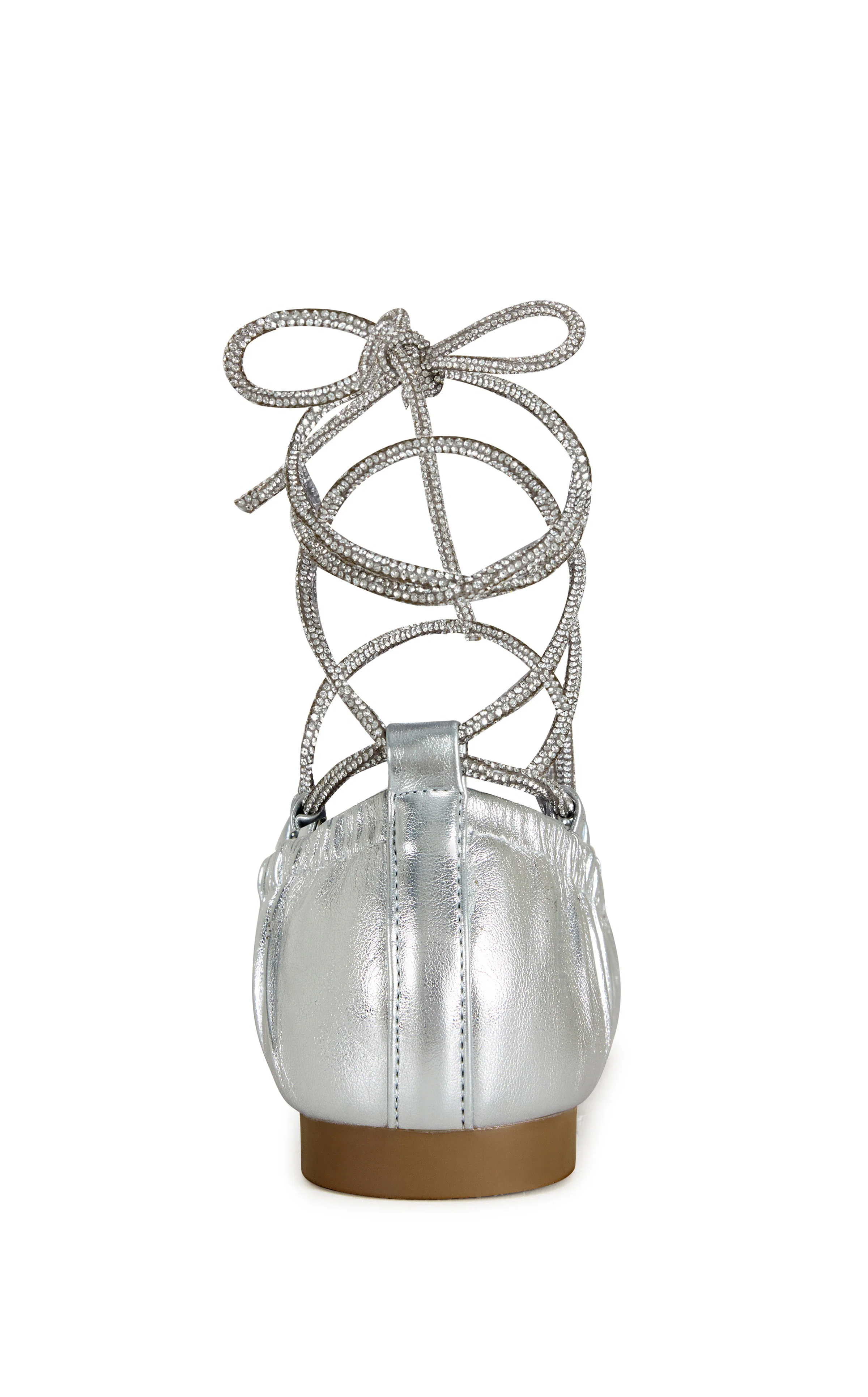 BENICIO-SILVER CRYSTAL WRAP POINTED TOE BALLET FLAT