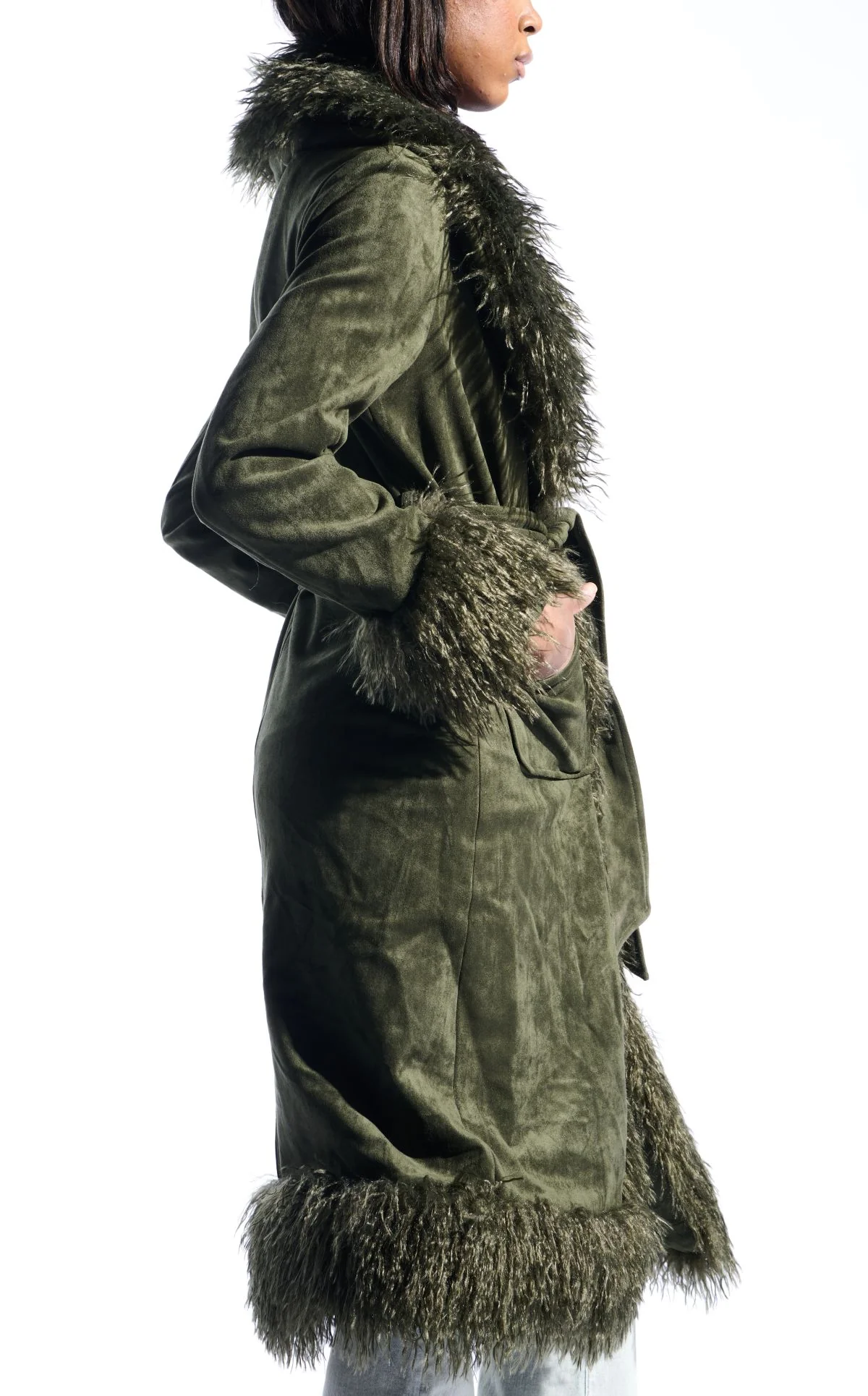 GILDA-OLIVE FAUX FUR TRENCH JACKET