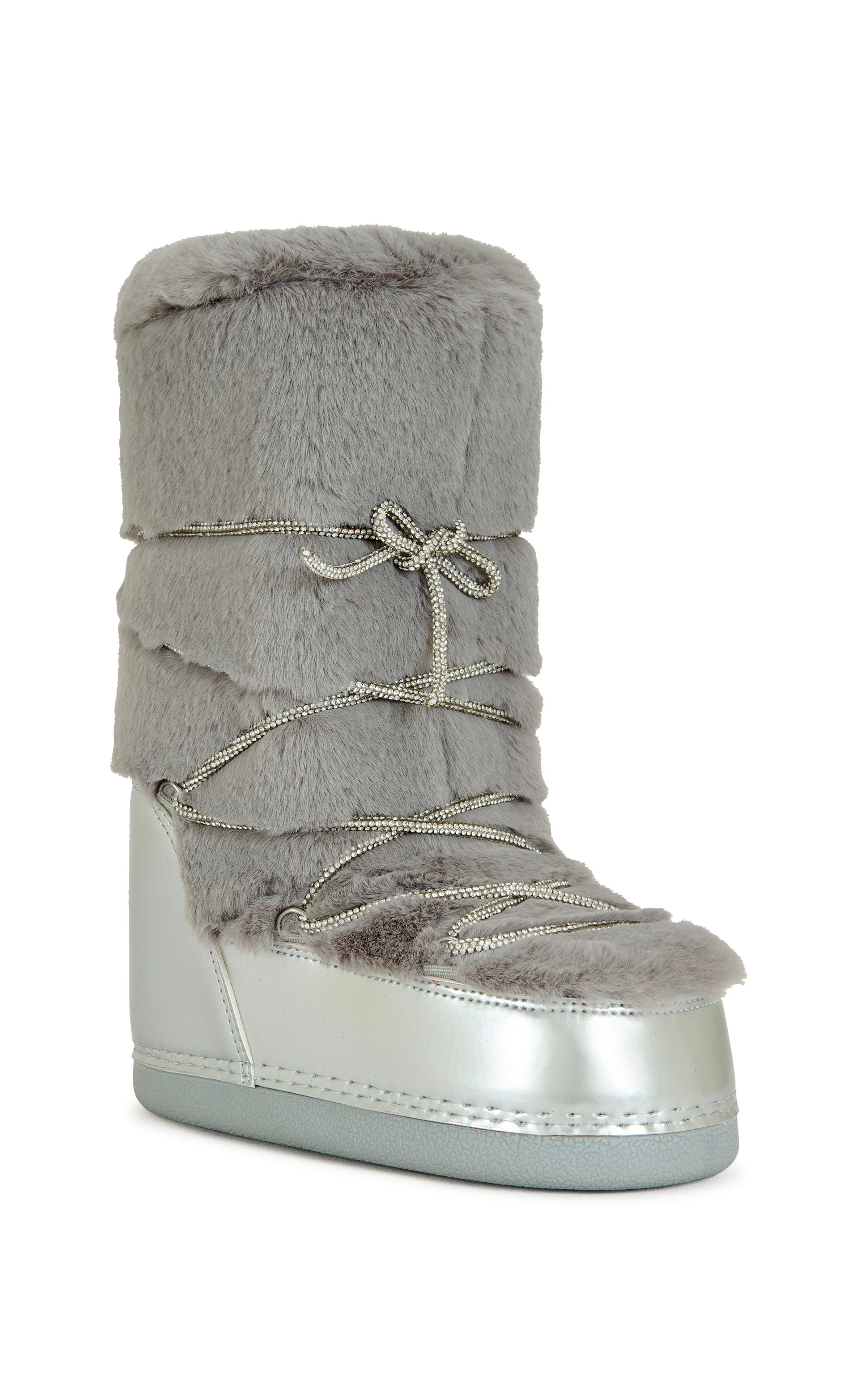 Moon boot platform with plush faux fur trim, combining cozy winter warmth with bold, statement-making style.