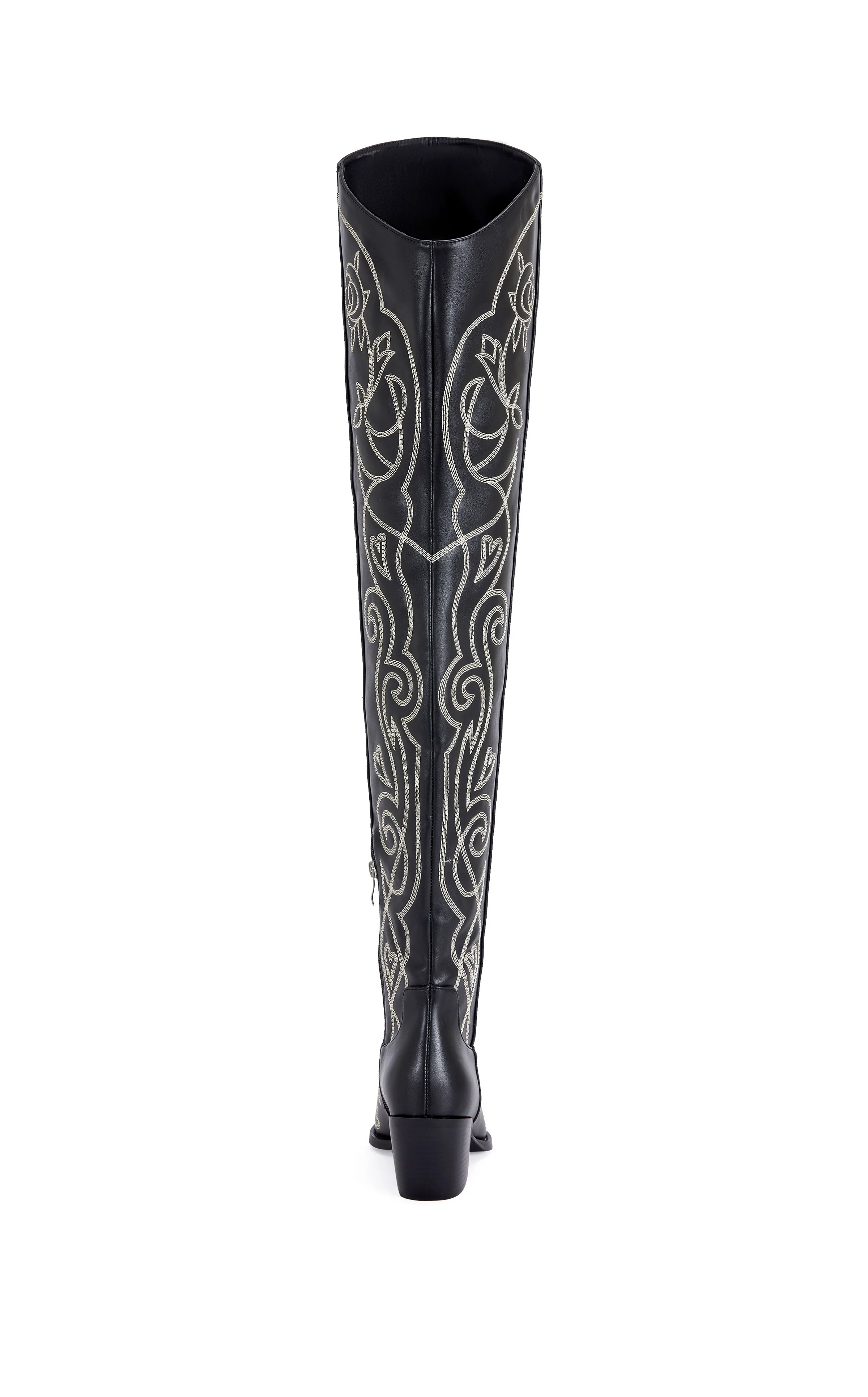 Make a fearless fashion statement in the KESS Black Over The Knee Western Boot, featuring a dramatic 31" shaft and a sleek pointed toe for the ultimate "it-girl" silhouette. These high-quality PU vegan leather boots offer a comfortable 2.5" block heel and a generous 28" wide calf circumference, ensuring you look effortlessly chic from the festival grounds to a night out. With a convenient side zip closure and trendy cowboy-inspired flair, these thigh-high western boots are the versatile showstoppers your wardrobe has been waiting for.