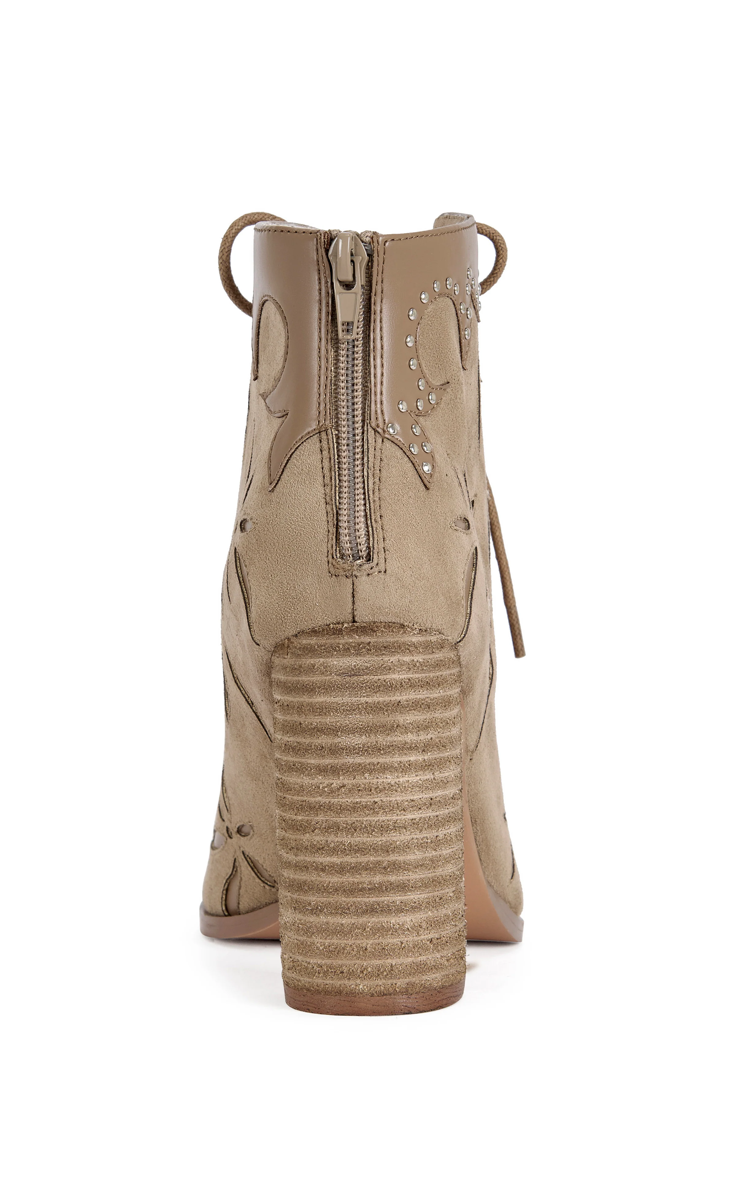Western peep-toe bootie with lace-up detailing and a block heel—cute, easy to wear, and effortlessly styled with everything.
