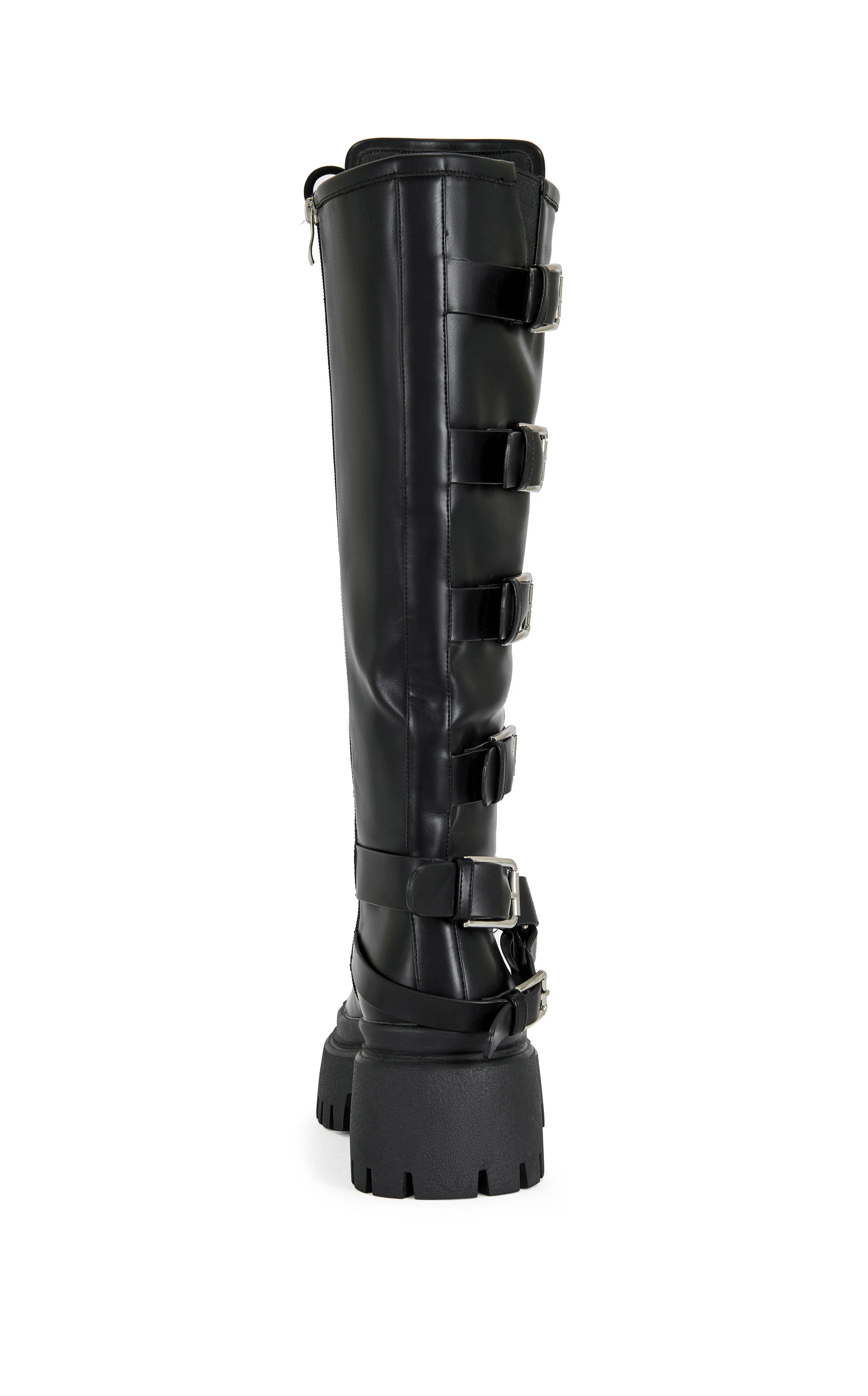 Badass lace-up combat boot with silver hardware and a chunky platform lug sole—stompy, statement-making, and unapologetically edgy.