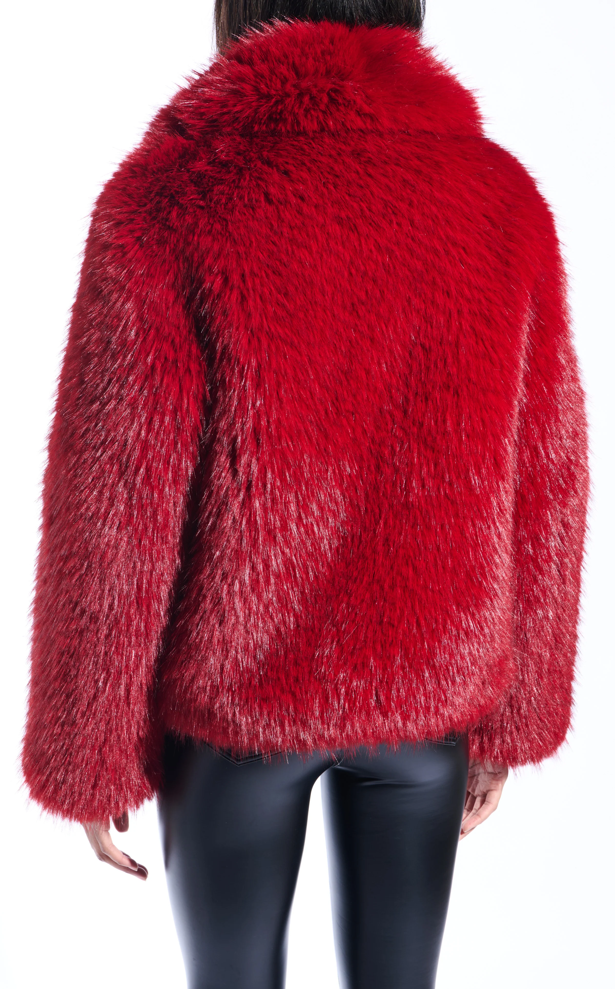 Bold and unapologetic, this red faux fur jacket turns up the volume with plush texture and high-impact color—made for main character moments.