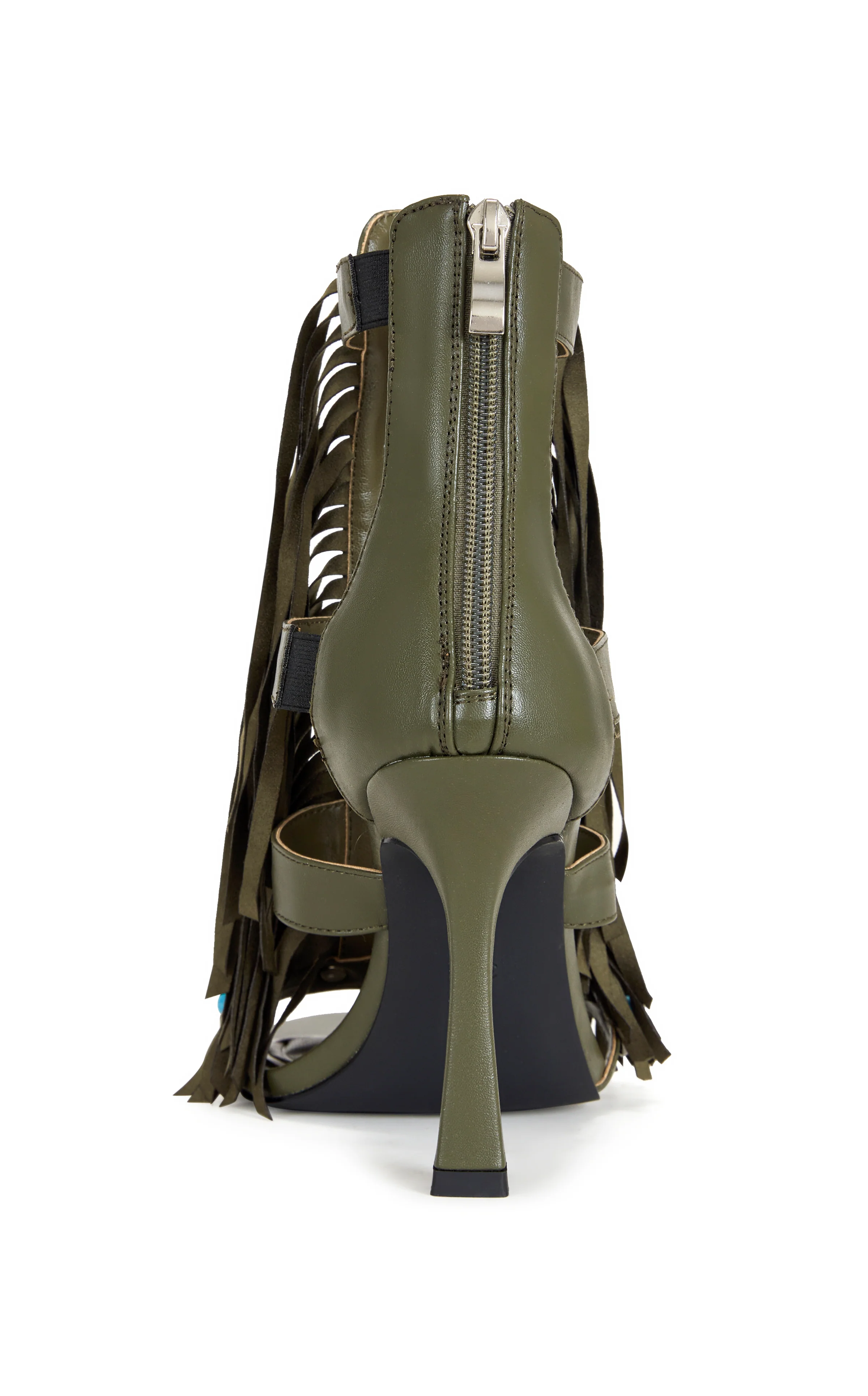SUMAC-OLIVE FRINGE GLADIATOR SANDAL BOOTIE