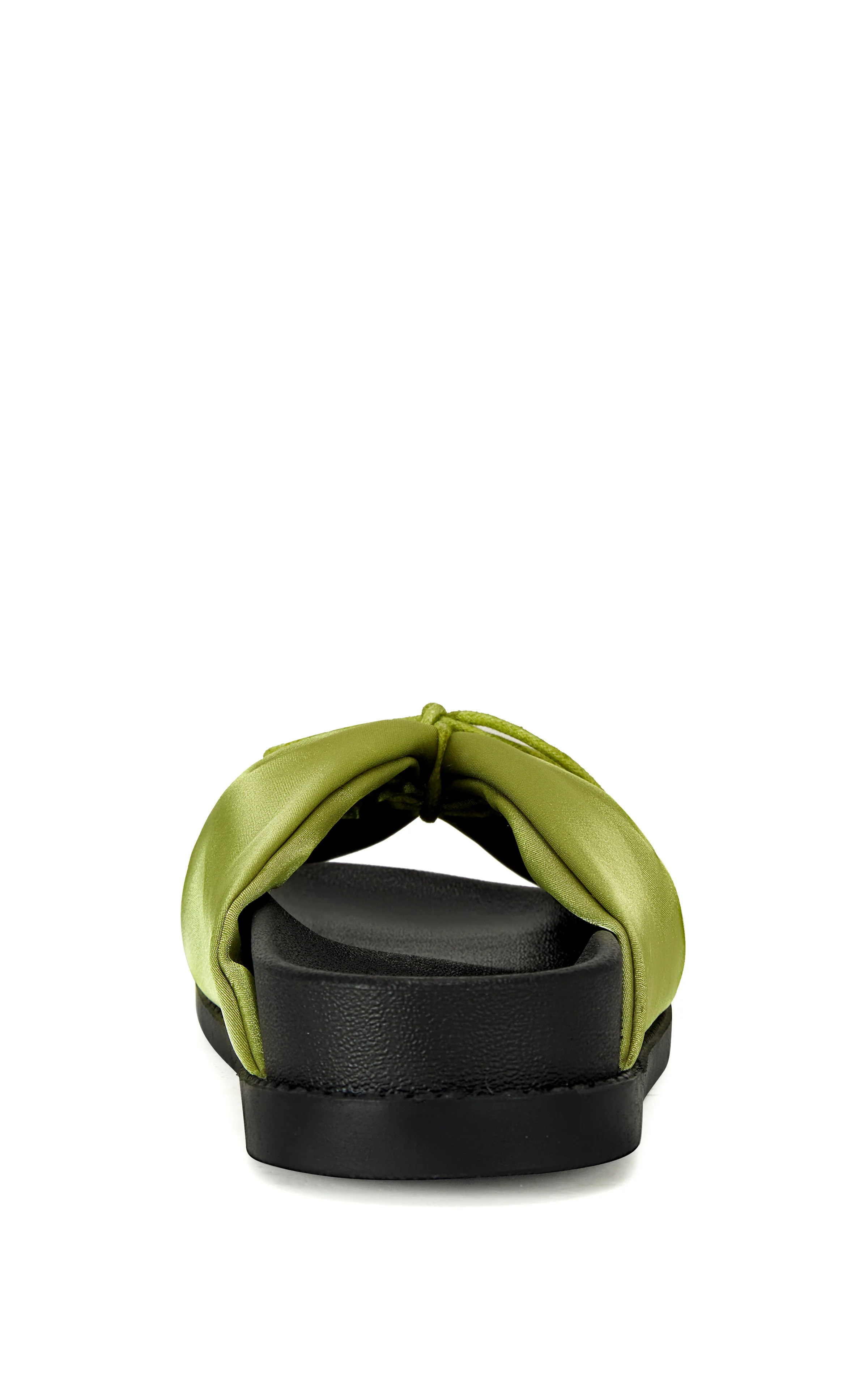 The THERESE flat sandal combines effortless style with all-day comfort. These feature a green satin upper with a sleek black sole and a bow accent for a finishing touch.Â
